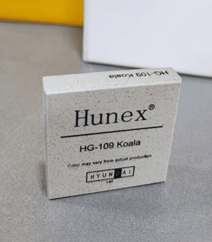 HG-104 Moon Hunex Solid Surface offers a touch of lunar tranquility to any space. Crafted from a blend of natural minerals and acrylic resins, it inherits the same functionality as its HG-10x counterparts: superior durability, resistance to stains and scratches, easy cleaning, and a non-porous surface for excellent hygiene. However, the Moon distinguishes itself with its soft, ethereal aesthetic.